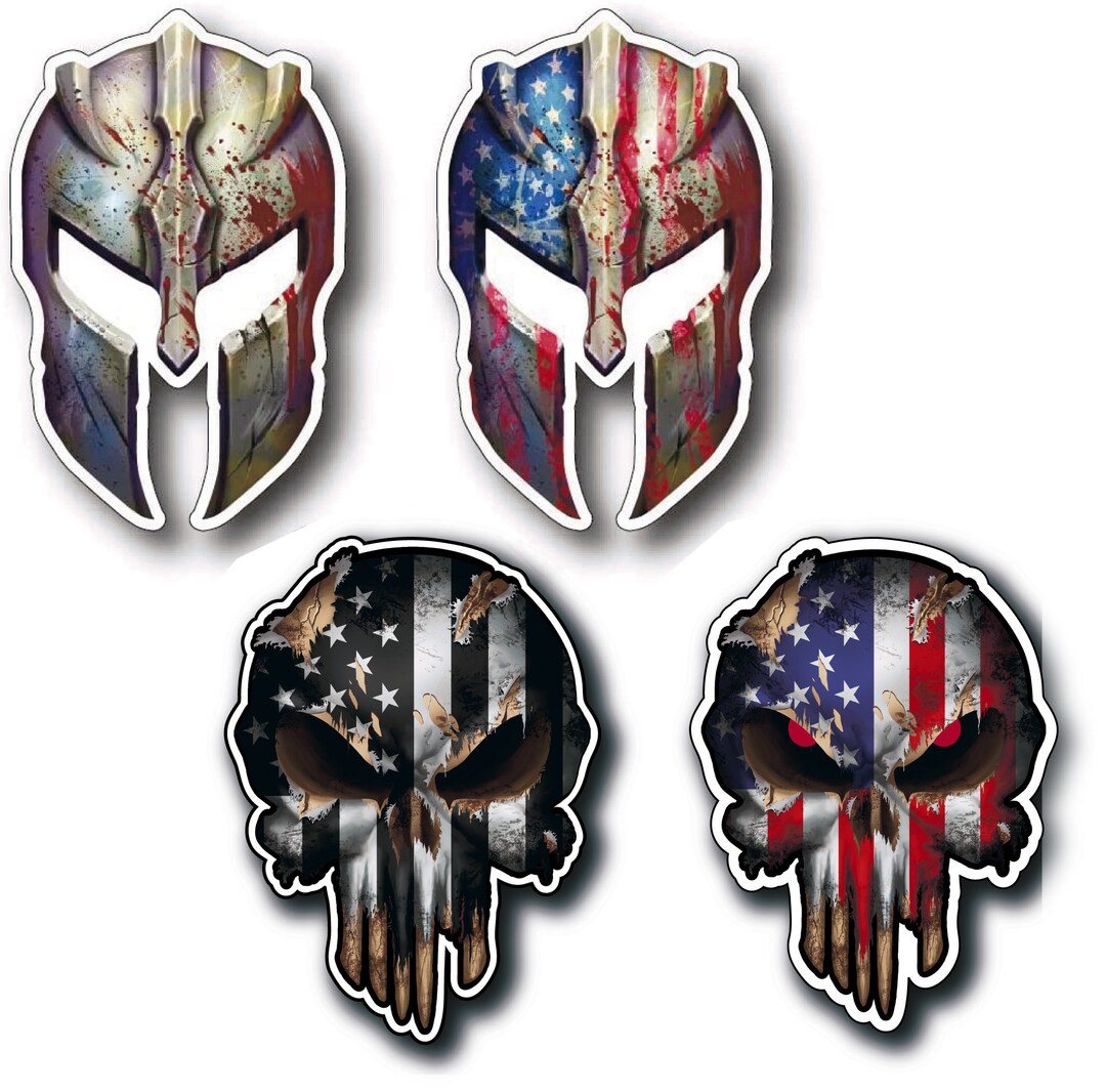4 Pack American Usa Flag Spartan Helmet Skull Window Decal Etsy